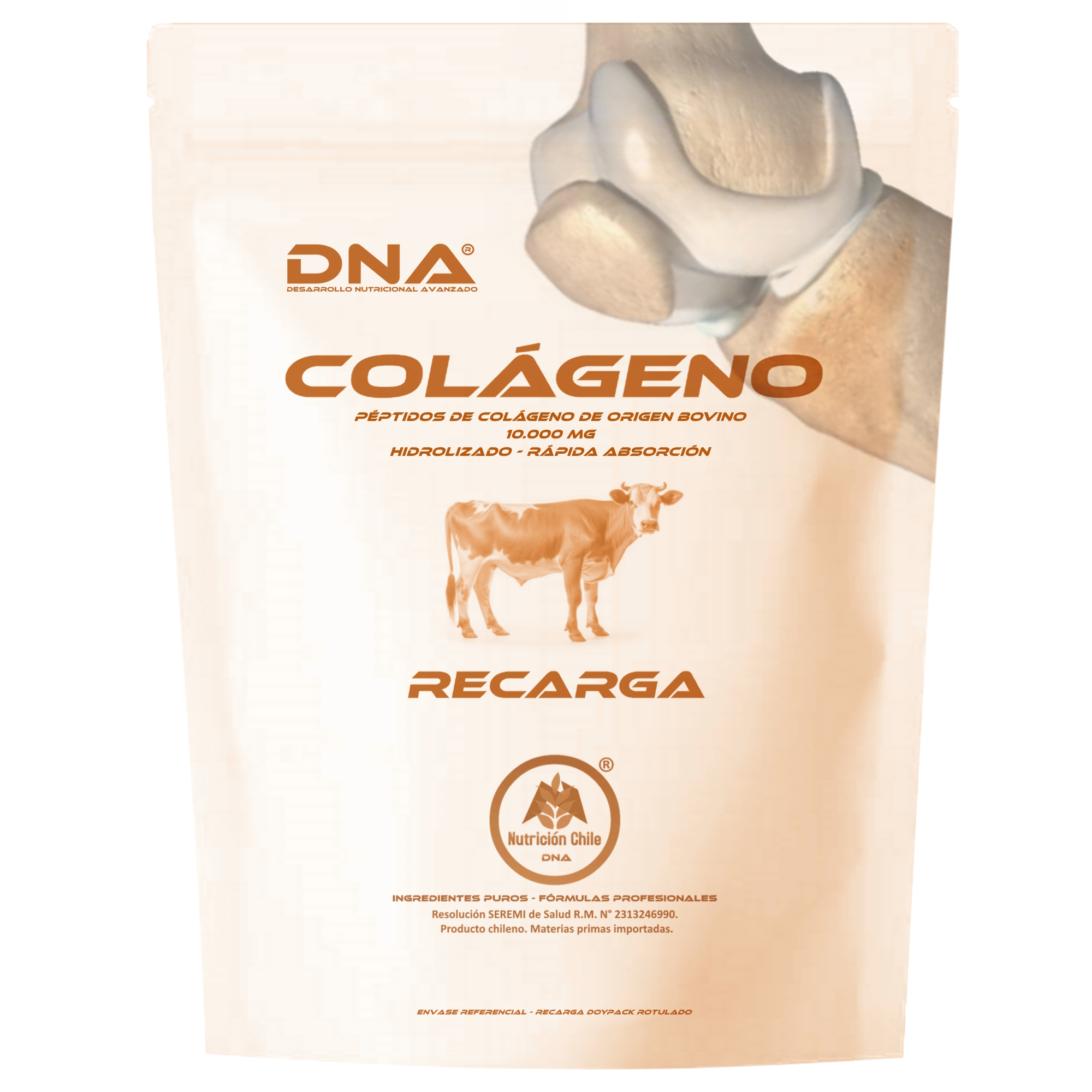 Colágeno DNA® Hidrolizado Bovino – Puro y Sabores – Recarga DoyPack – 500 GR