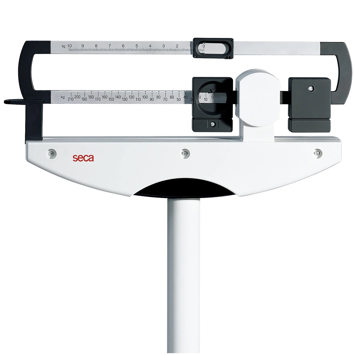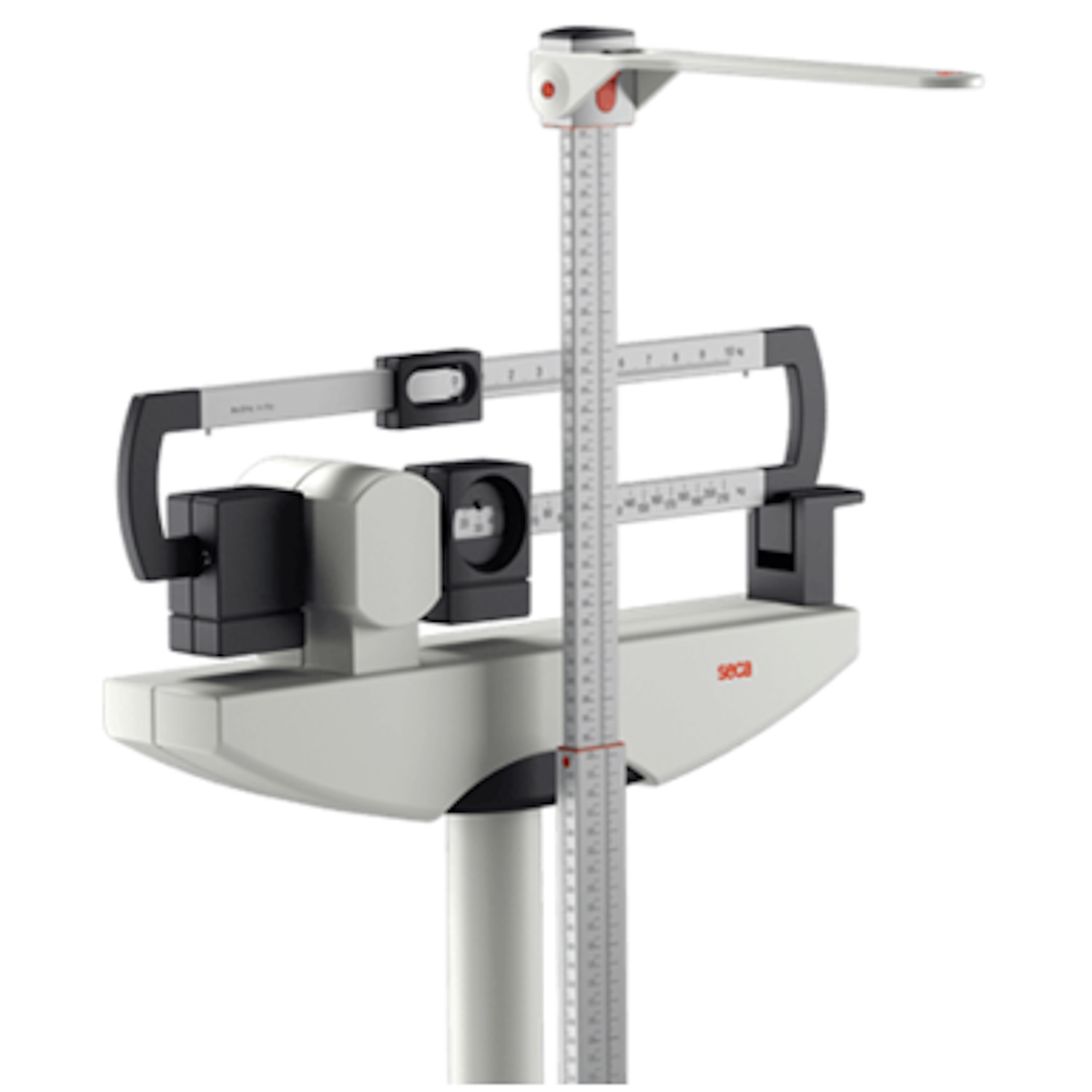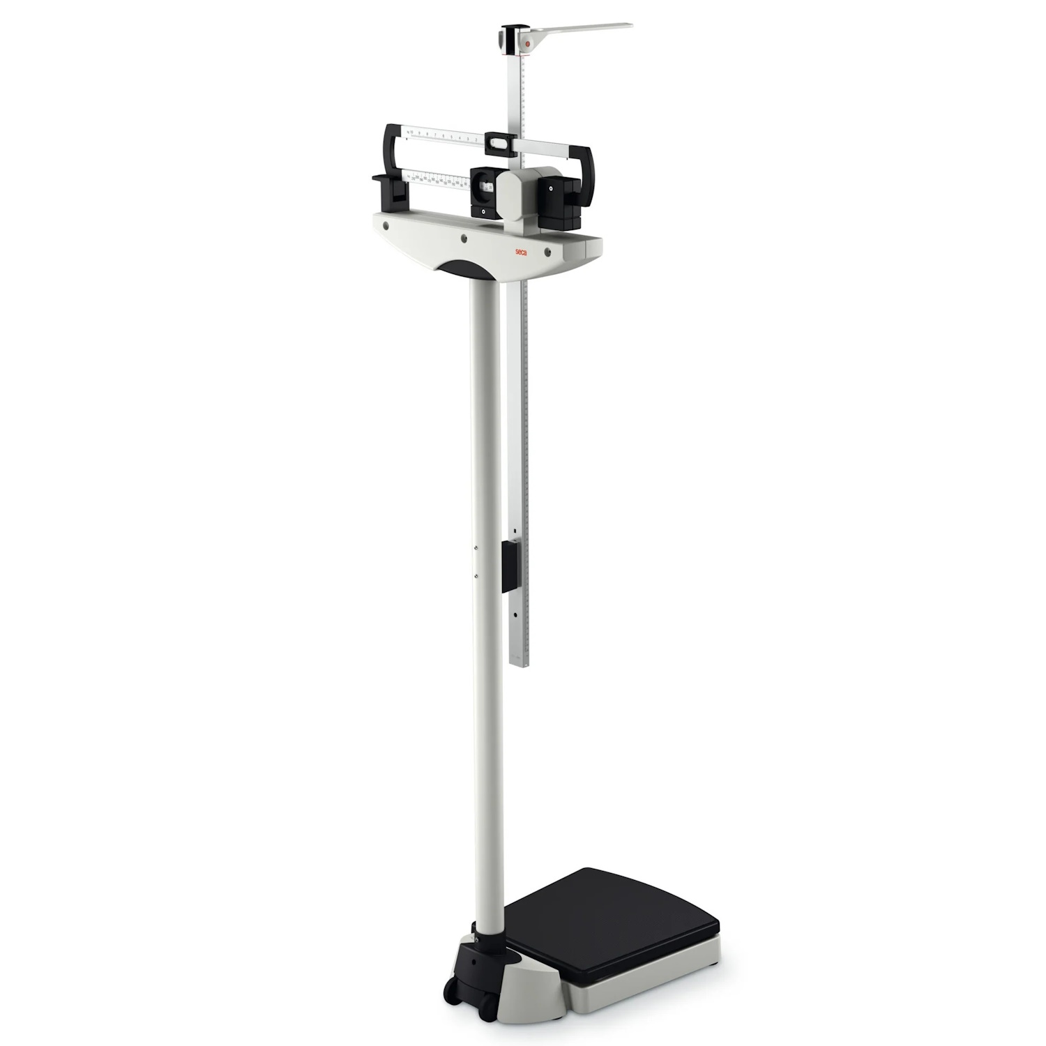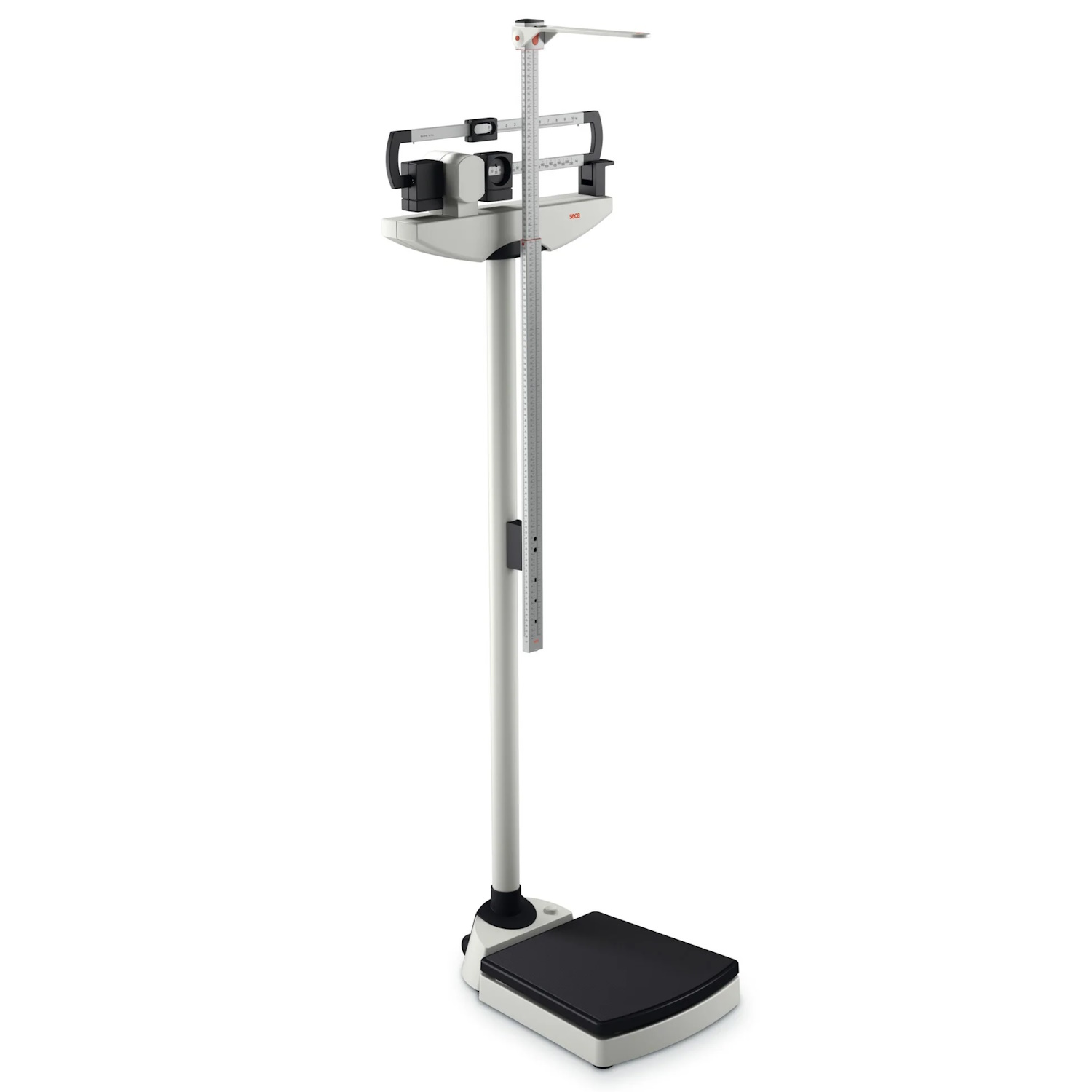Báscula mecánica de columna, con pesas deslizantes a la altura de los ojos